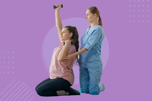 زيارة طبيب العلاج الطبيعي مع الجلسة